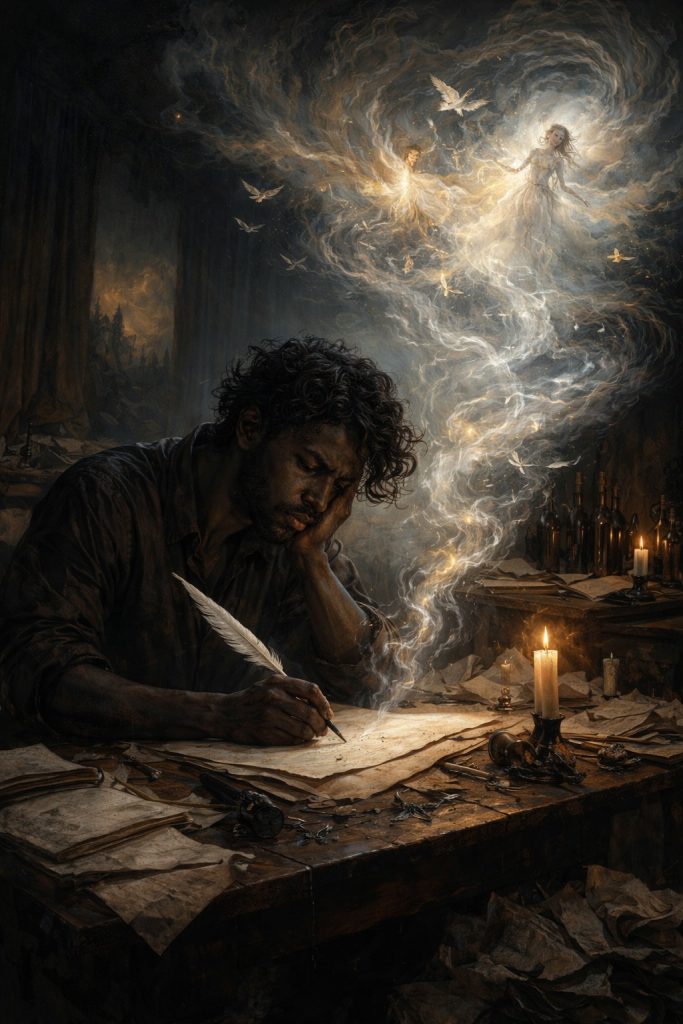 His imagination lifts him to the mountaintop, but also drags him down to the deepest valley.